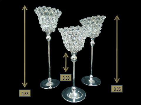 Vaso coleção imperial aja c/03 peças Resina-ferro-pedraria-espelhado prata G-0,38 - M-0,35 - P-0,30 cm